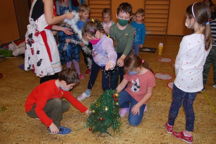 V tento den se tančilo, soutěžilo a také odměňovalo. Nadílku totiž dětem přinesl sám Svatý Mikuláš s čertíkem a andílkem. Dalším překvapením byla vánoční nadílka. Tento den si děti zpívaly koledy, pouštěly lodičky ze skořápek…a když zazvonil zvoneček, oči dětí se rozzářily a potichoučku vyslovily „je tady ježíšek“. Každý rok také myslíme i na zvířátka. Ke krmelci jsme odnesli mrkvičky, jablíčka, kukuřice, kaštany a radovali jsme se, že Vánoce jsou i u zvířátek. V posledním týdnu nás navštívilo divadlo Cestovadélko se „Zimní pohádkou“. Vánoční překvapení jsme připravili i pro rodiče v podobě krátkého videa s vystoupením dětí z mateřské a základní školy. Snažili jsme se potěšit i starší občany z Klubu důchodců vánočním dárečkem a nezapomněli jsme ani na dárky pro tříkrálovou sbírku. A protože dobrých skutků není nikdy dost, i letos jsme poslali za mateřskou a základní školu 1000,- Kč nadaci Dobrý anděl. Teď už nám zbývá jen popřát všem krásné vánoce a šťastný nový rok 2022.