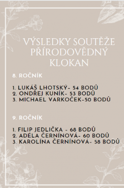 Výsledky soutěže - přírodovědný klokan